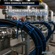 Kable Kontrol® Tefzel Cable Ties are the ideal cable ties for chemical processing and nuclear power plants or any environment subject to harsh conditions as they are very resilient ties. Lowest threading force of any one-piece cable tie in the industry. Curved tip is easy to pick up from flat surfaces and allows faster initial threading to speed installation. Ideal for applications requiring resistance to environmental stresses such as a chemical attack, gamma radiation, ultraviolet radiation, and extreme high and low temperatures. Tefzel cable ties have exceptional resistance to extreme temperatures, chemicals, and gamma and UV radiation. They are UL 94V-0 rated for excellent flammability rating and low smoke density. They can be used both indoors and outdoors.