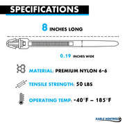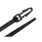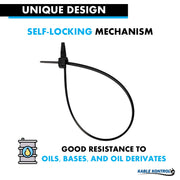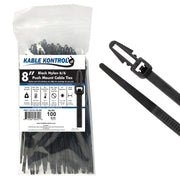Kable Kontrol Arrow Head Push Mount Cable Ties are made from high quality Nylon ensuring exceptional durability and long-lasting performance. Designed to withstand temperatures ranging from -40°F to +185°F, they can also endure up to +115°C with heat-stabilized material for continuous use and +130°C for short periods. With a 50-lb tensile strength, these cable ties provide a secure and reliable fastening solution for various applications. The UV-resistant arrowhead black push mount cable ties feature carbon black additives, offering superior protection against UV damage, making them ideal for both indoor and outdoor use. The push-mount design allows self-locking and easy installation by snapping into a hole, securely locking the tie into place without the need for wings. Their one-piece construction ensures consistent performance and reliability, while the curved tip allows for fast and easy threading, speeding up the installation process. Our push mount zip ties are RoHS and REACH compliant, meeting environmental and safety standards, making them perfect for use in automotive, industrial, and outdoor cable management tasks.