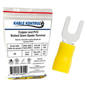 The Kable Kontrol® Spade Connector - Electrical Wire Terminal - Male - PVC Vinyl Insulated, offers a practical and reliable solution for connecting, mating, or terminating a single wire with a screw or stud-type electrical connection. Featuring economical PVC vinyl insulation and a durable butted seam design, it provides dependable performance in automotive, marine, and general electrical applications. The flared insulation sleeve ensures easy wire insertion, while the industry-standard color coding simplifies wire range identification. Rated for up to 600 volts and 105°C, this UL-listed connector is a trusted choice for safe and efficient wiring.